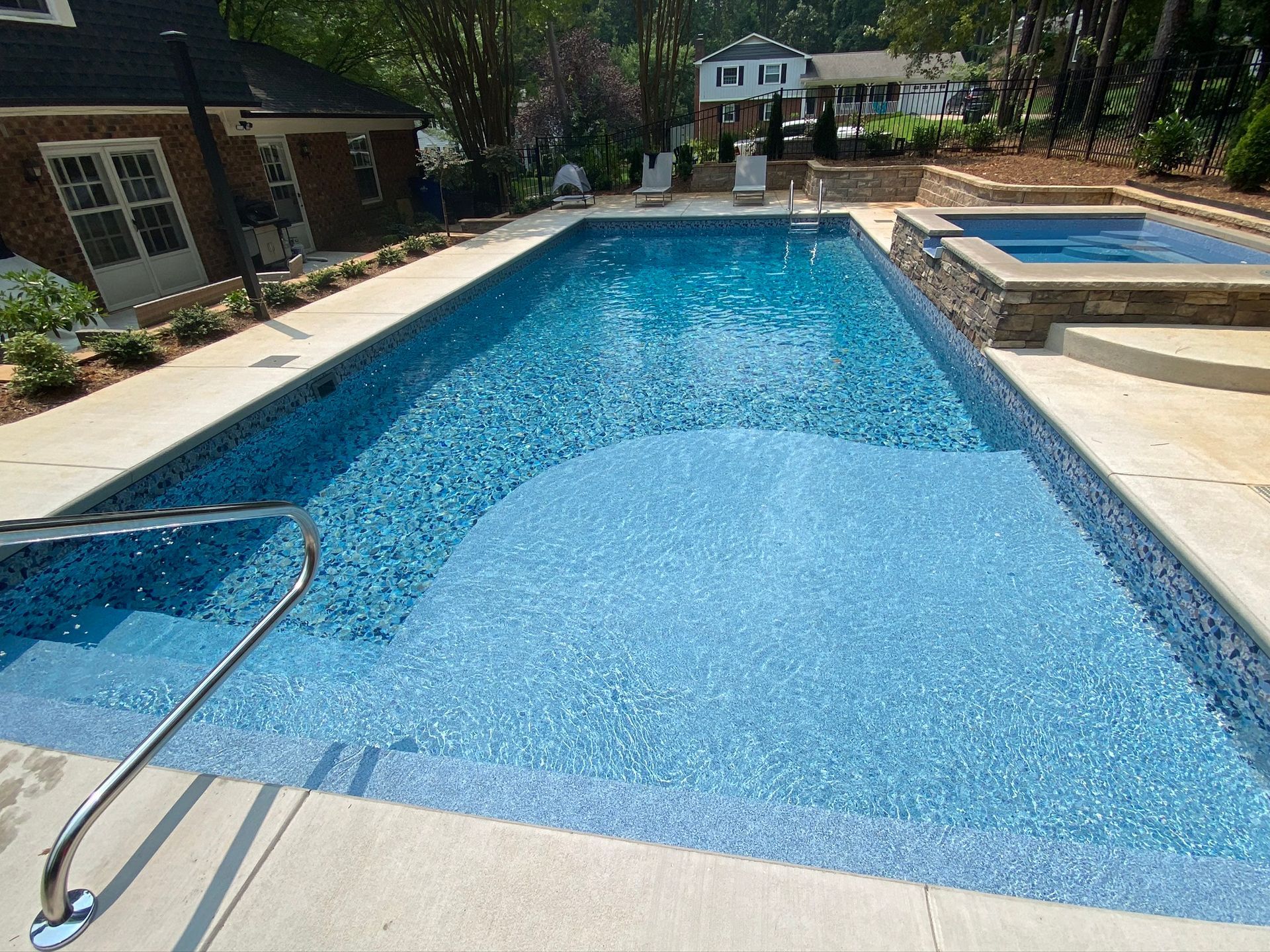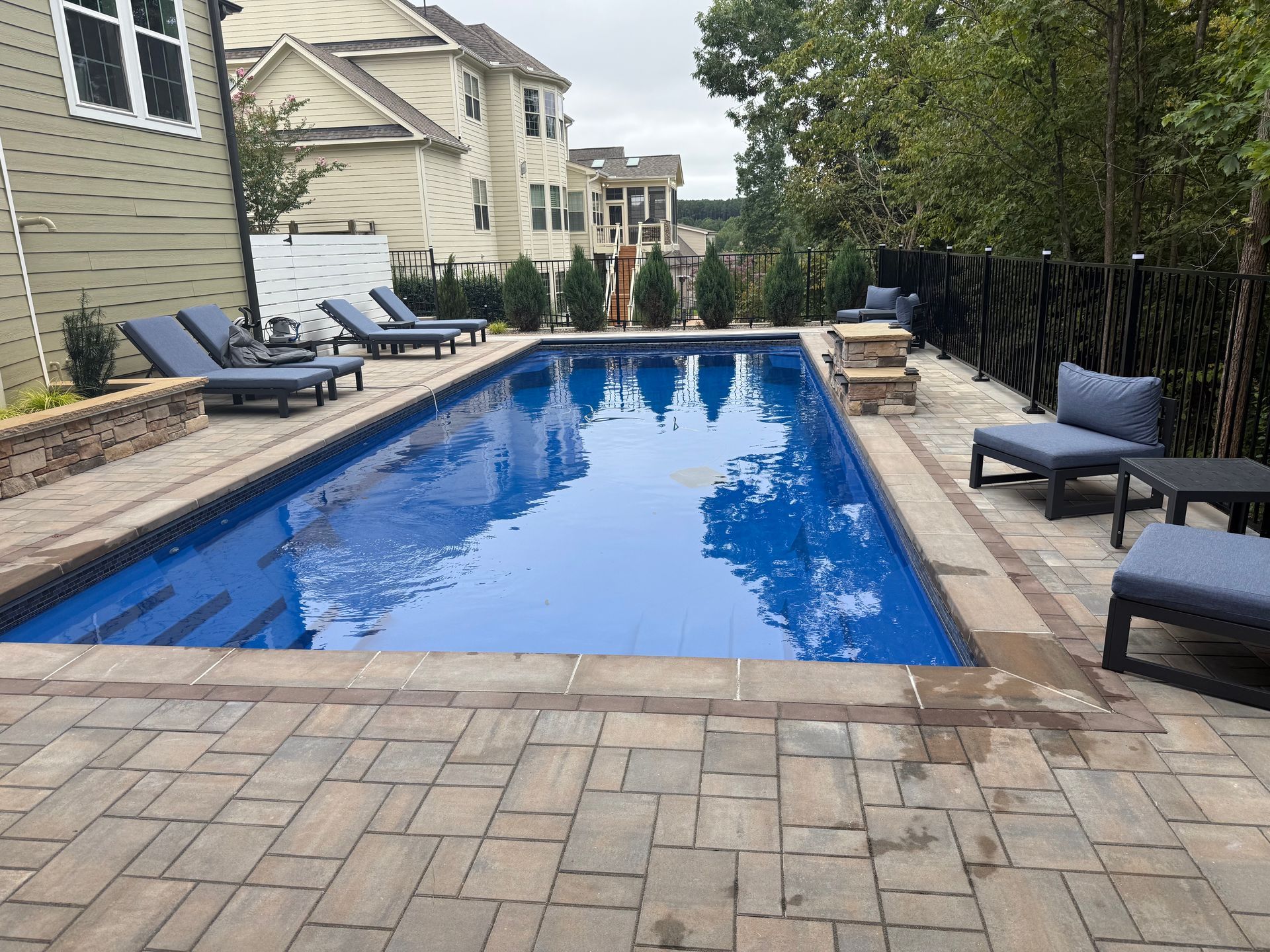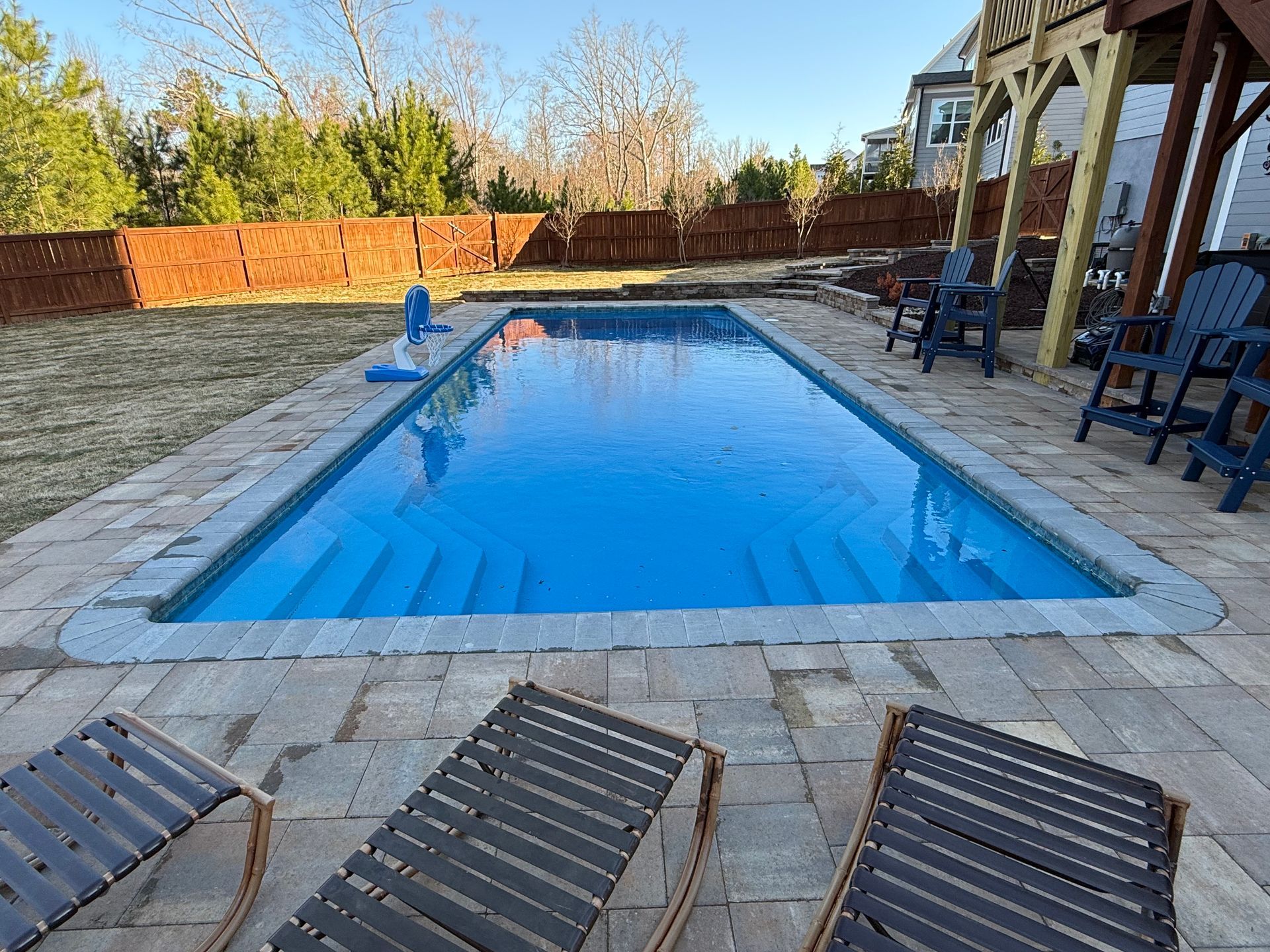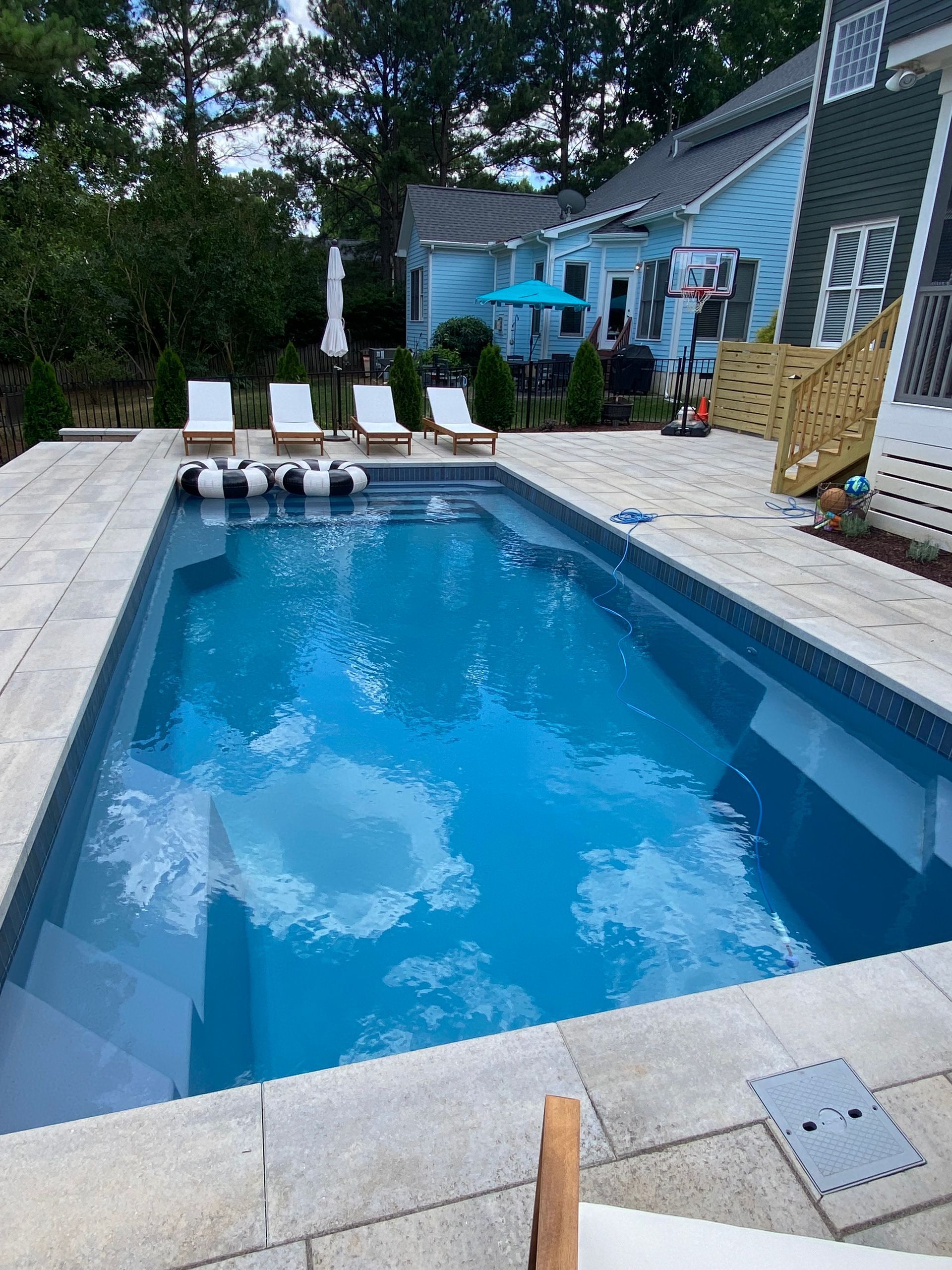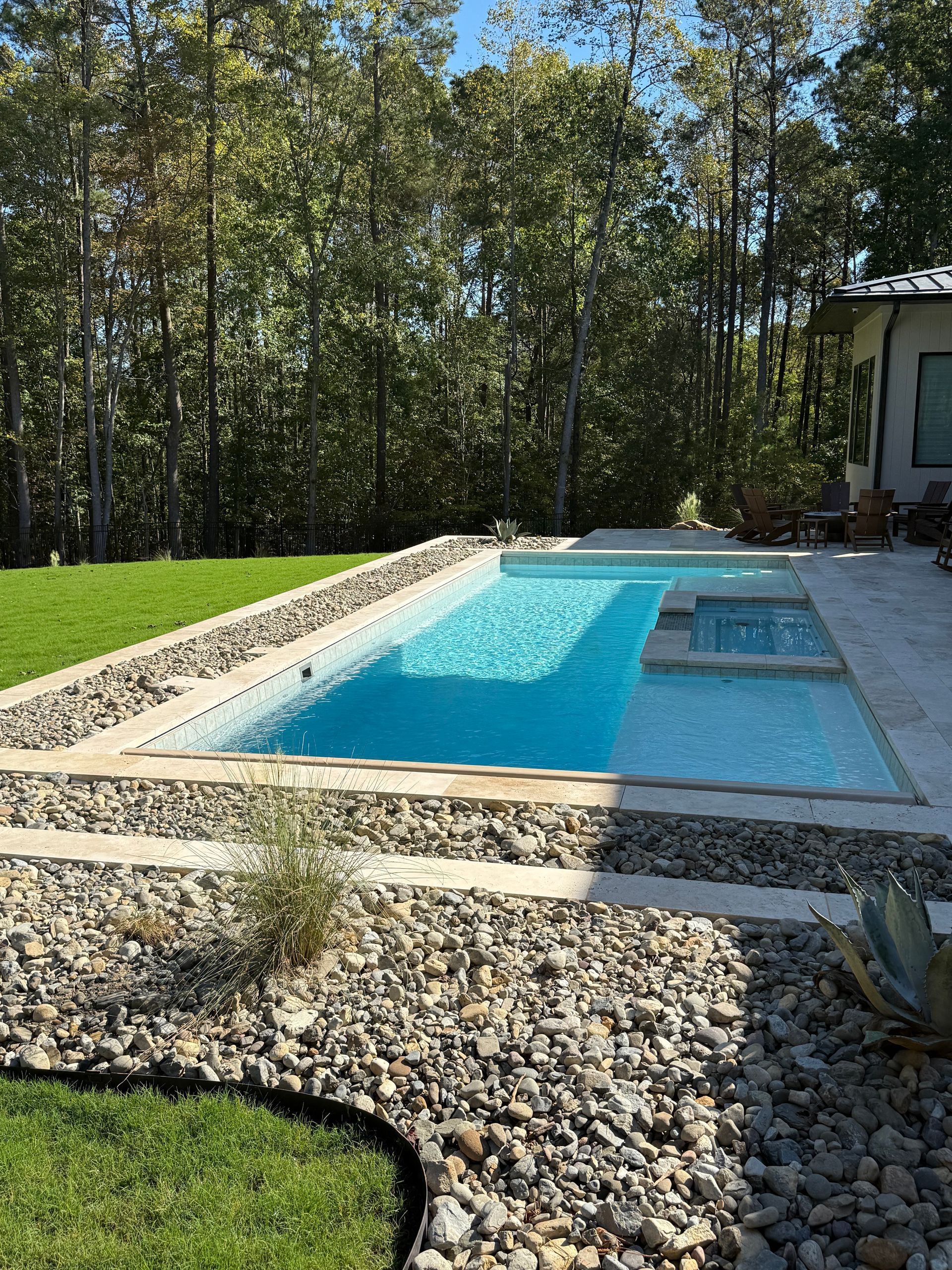We’ve built hundreds of beautiful new swimming pools throughout the Zebulon, Youngsville, Clayton, Wendell, Knightdale, Wake Forest, Raleigh, Cary, Apex, Durham, Chapel Hill and Holly Springs, NC area! Beyond just installing new in-ground pools, we also offer regular swimming pool repairs to keep your pool in great condition year round. Get a sense of what we can do and start imagining the possibilities for your pool by viewing our photos. When you are ready to get started on your new in-ground pool, do not hesitate to give our team of swimming pool contractors a call!