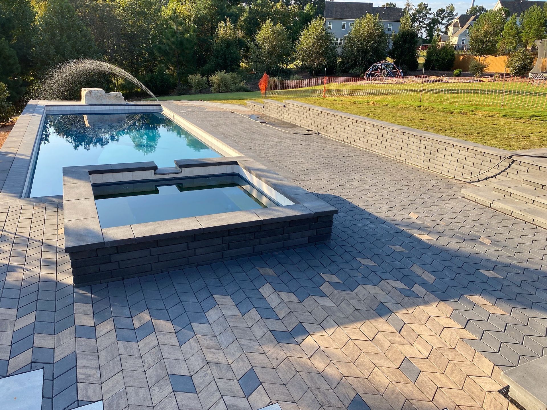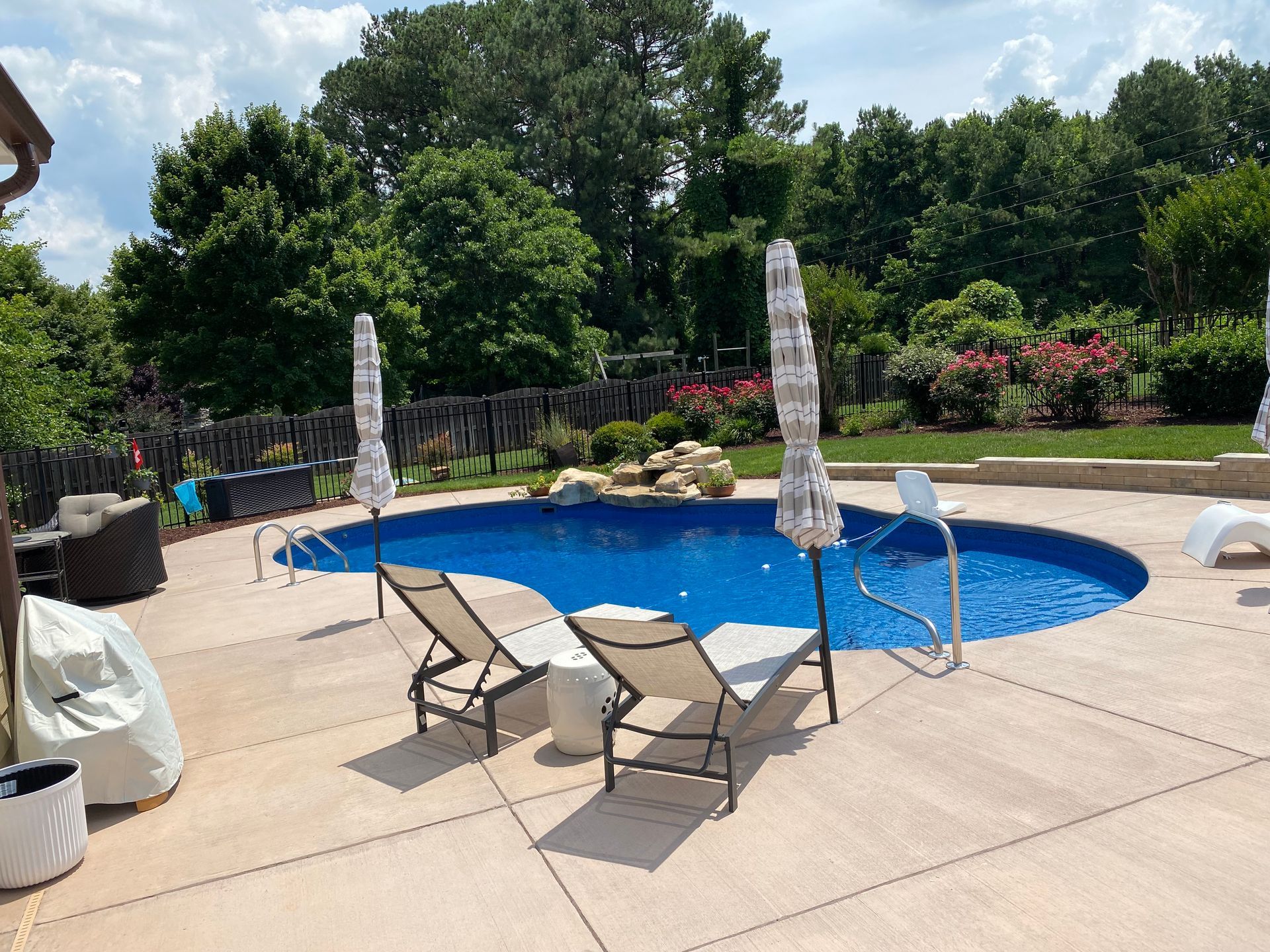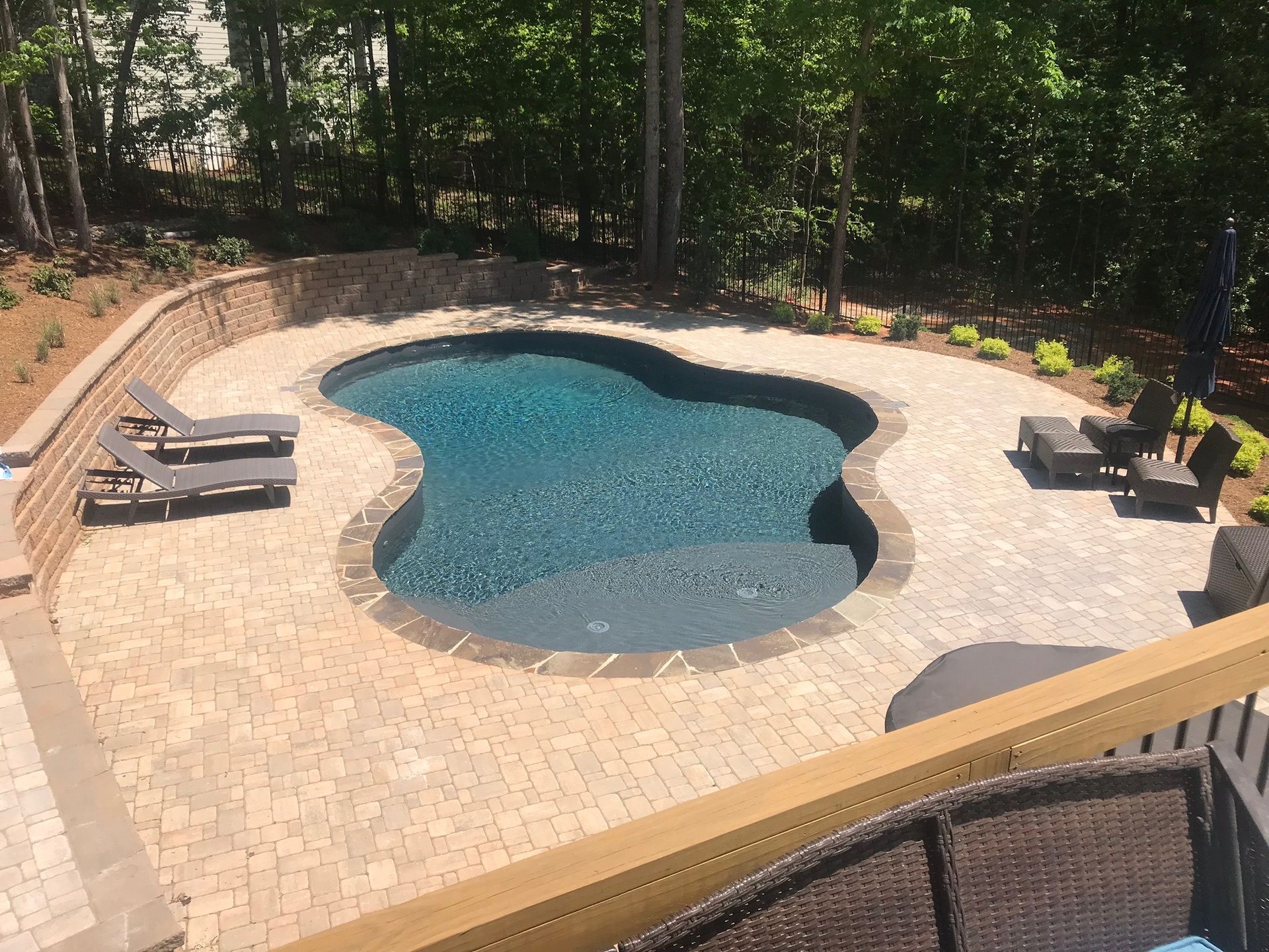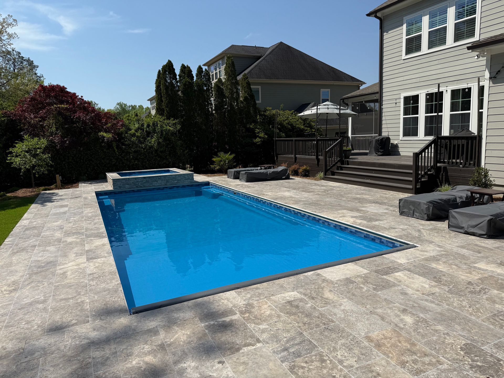 We’ve built hundreds of beautiful new swimming pools throughout the Zebulon, Youngsville, Clayton, Wendell, Knightdale, Wake Forest, Raleigh, Cary, Apex, Durham, Chapel Hill and Holly Springs, NC area! Beyond just installing new in-ground pools, we also offer regular swimming pool repairs to keep your pool in great condition year round. Get a sense of what we can do and start imagining the possibilities for your pool by viewing our photos. When you are ready to get started on your new in-ground pool, do not hesitate to give our team of swimming pool contractors a call!