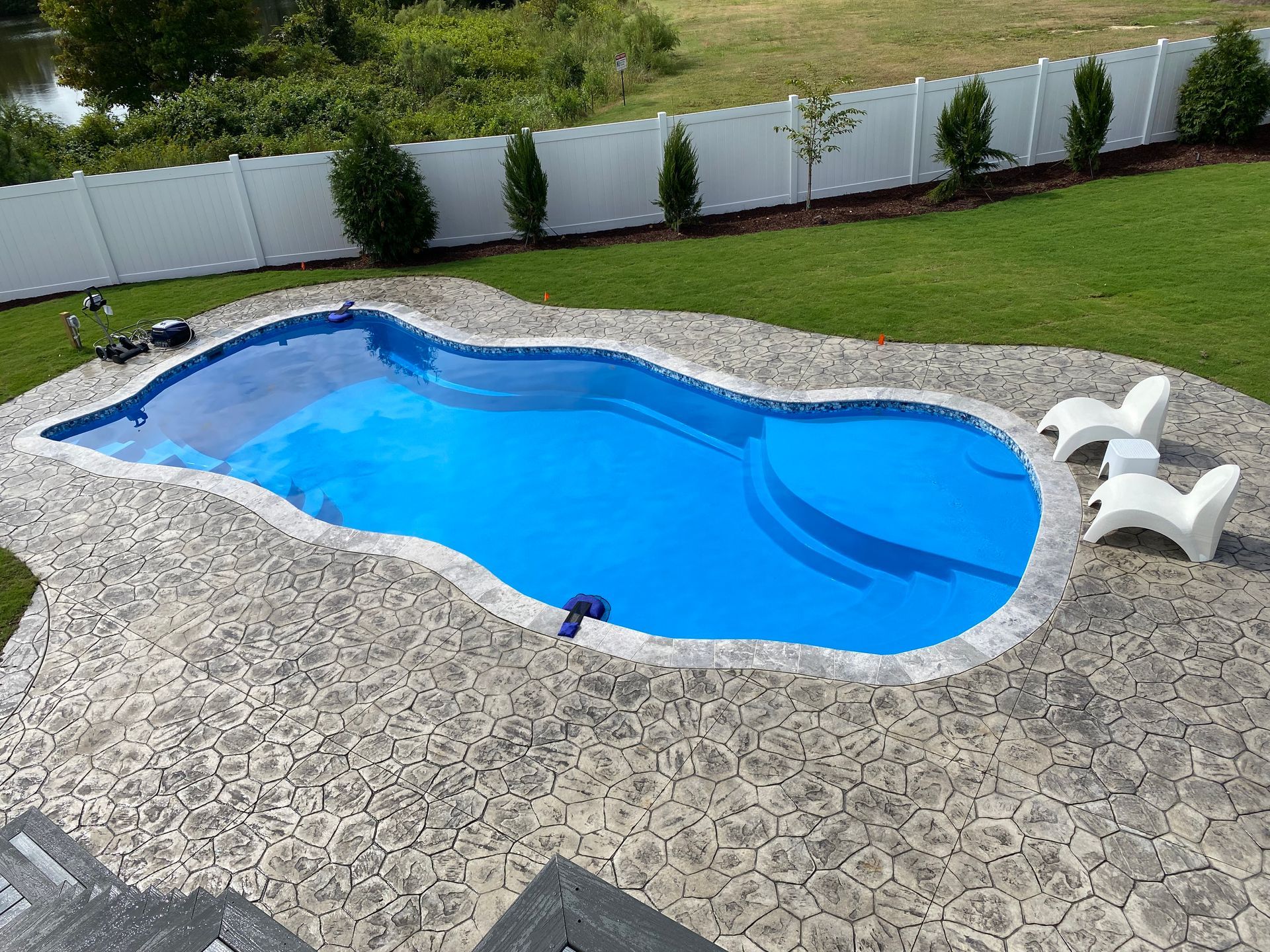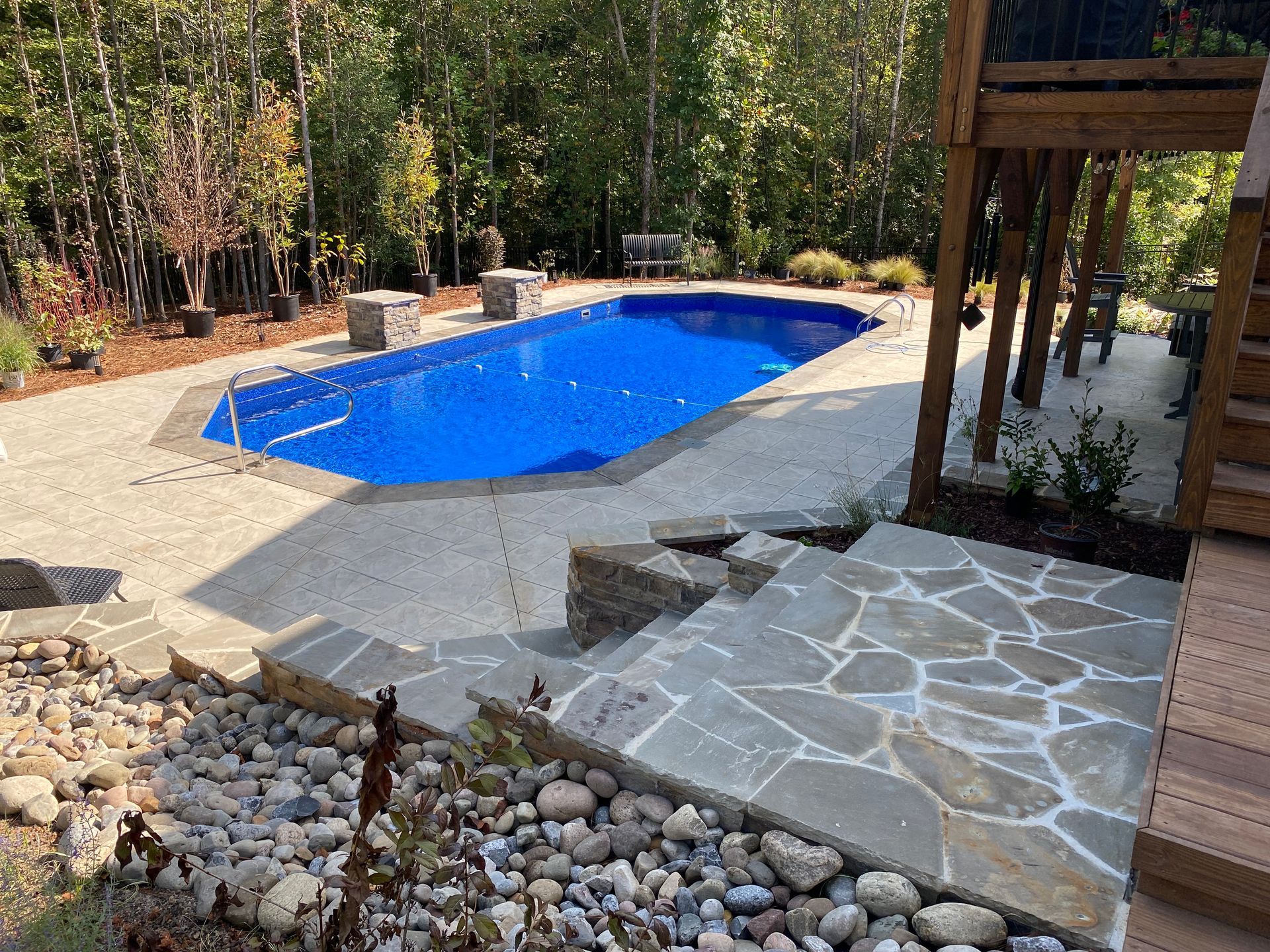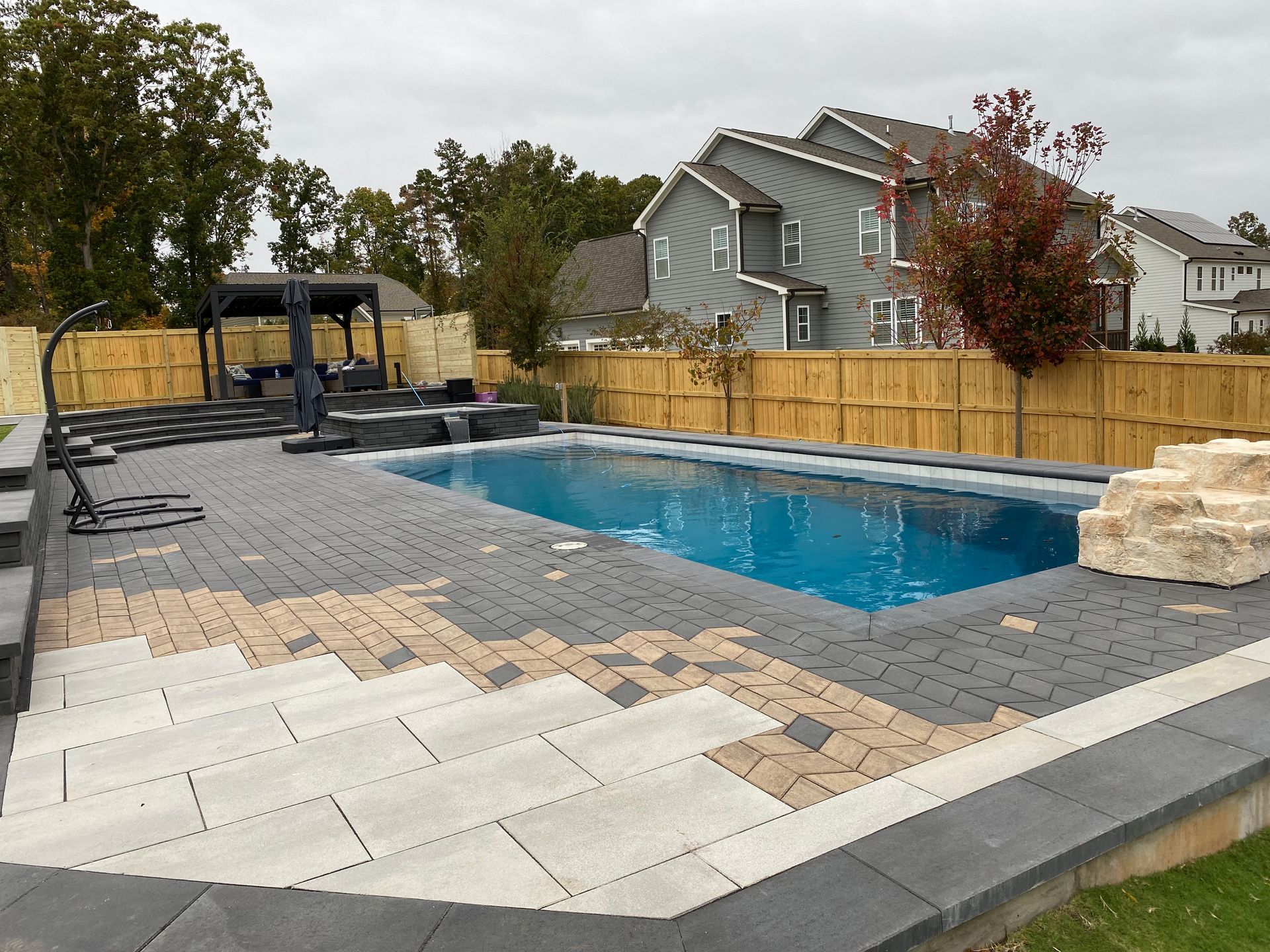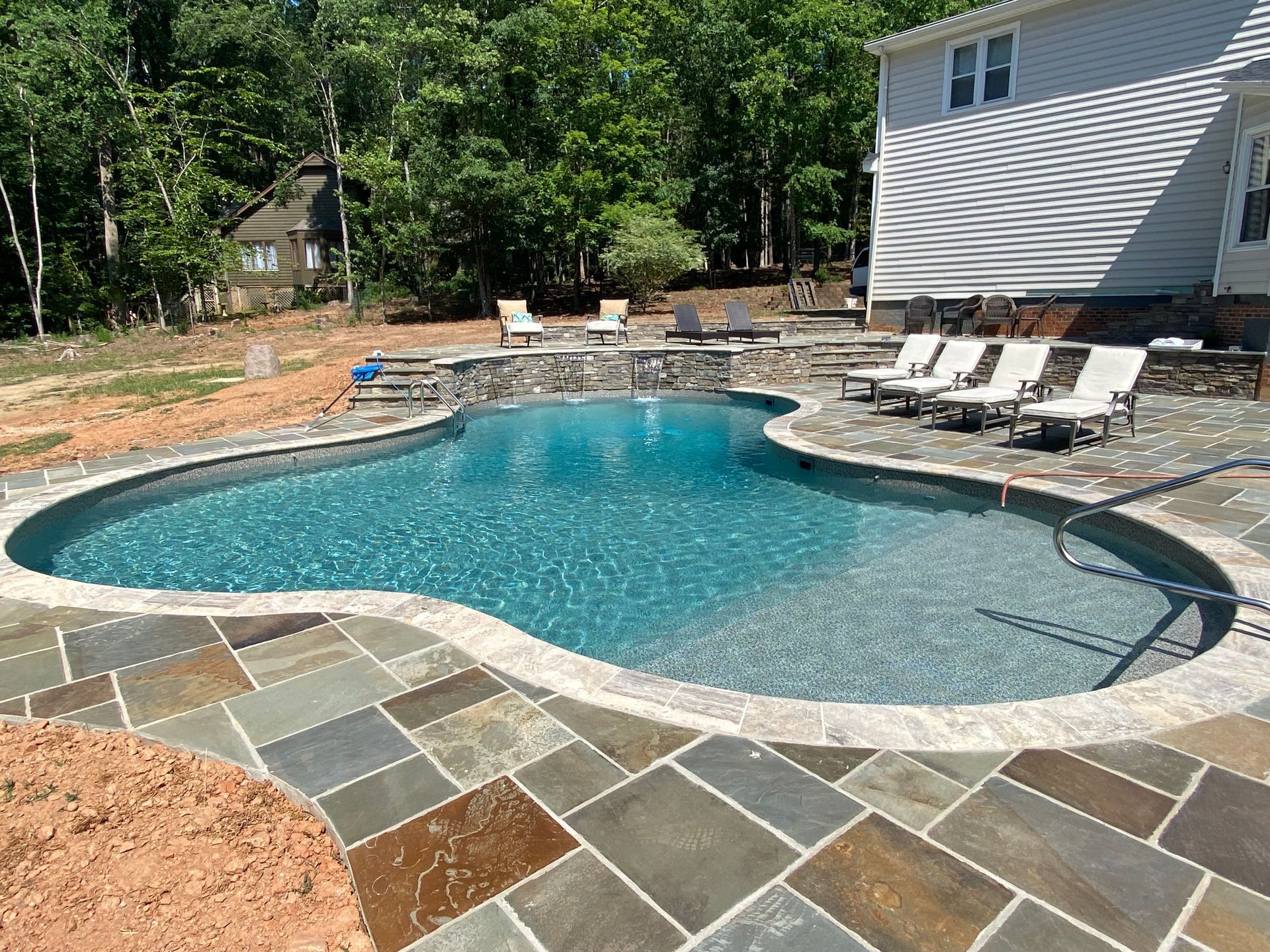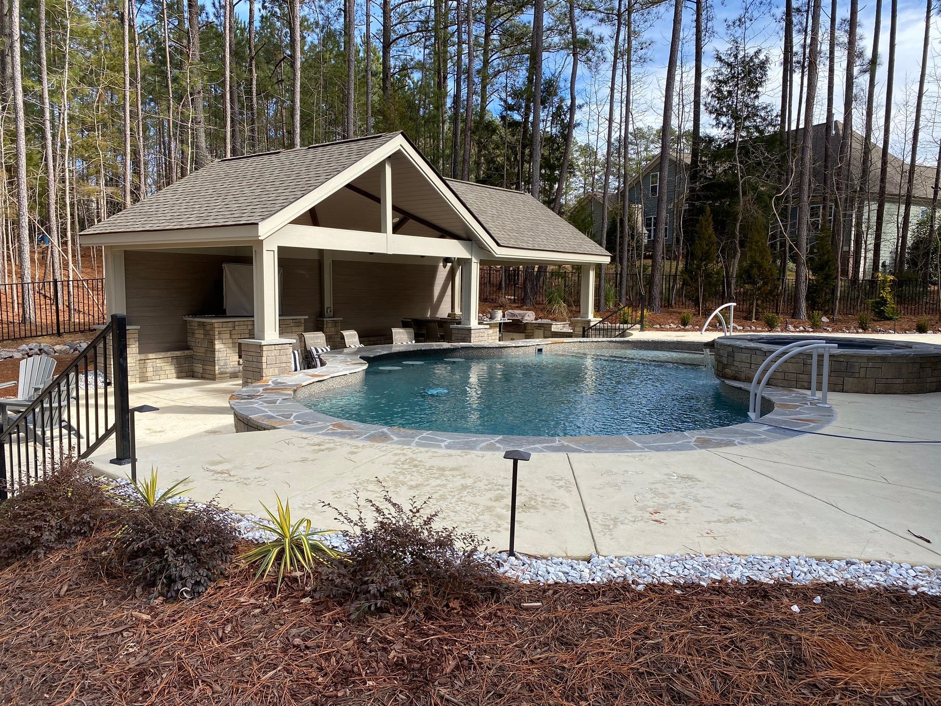 We’ve built hundreds of beautiful new swimming pools throughout the Zebulon, Youngsville, Clayton, Wendell, Knightdale, Wake Forest, Raleigh, Cary, Apex, Durham, Chapel Hill and Holly Springs, NC area! Beyond just installing new in-ground pools, we also offer regular swimming pool repairs to keep your pool in great condition year round. Get a sense of what we can do and start imagining the possibilities for your pool by viewing our photos. When you are ready to get started on your new in-ground pool, do not hesitate to give our team of swimming pool contractors a call!