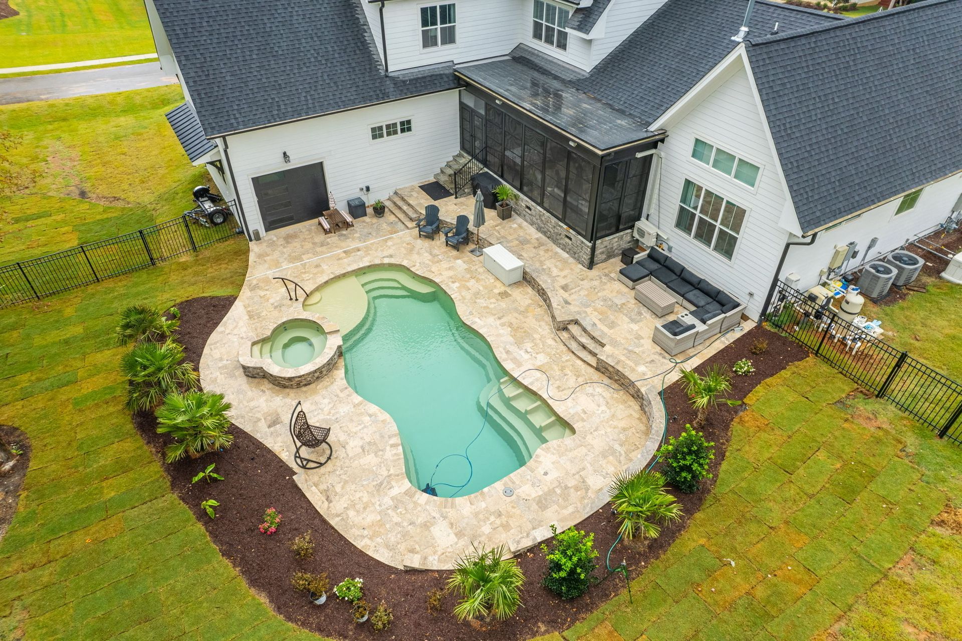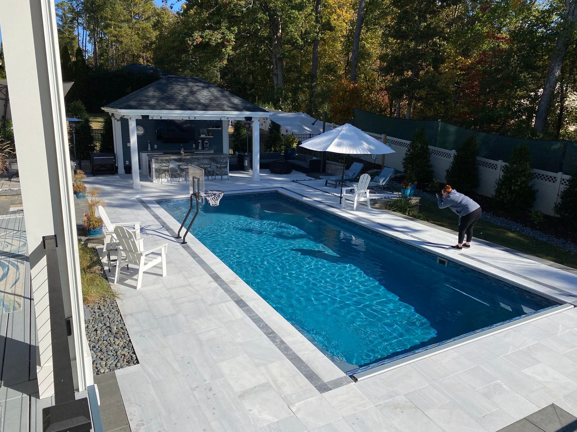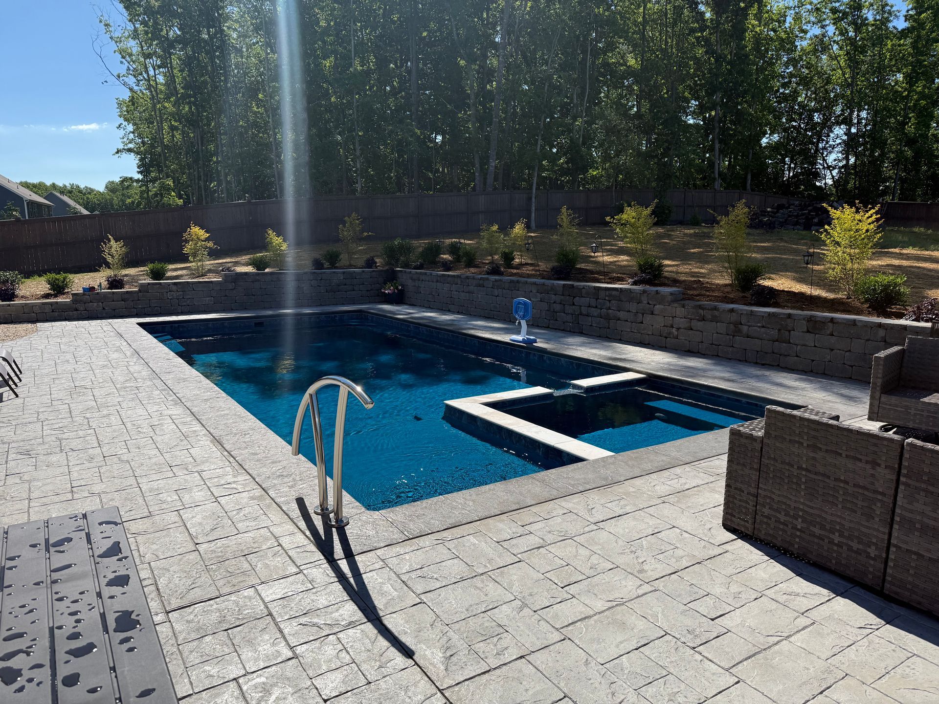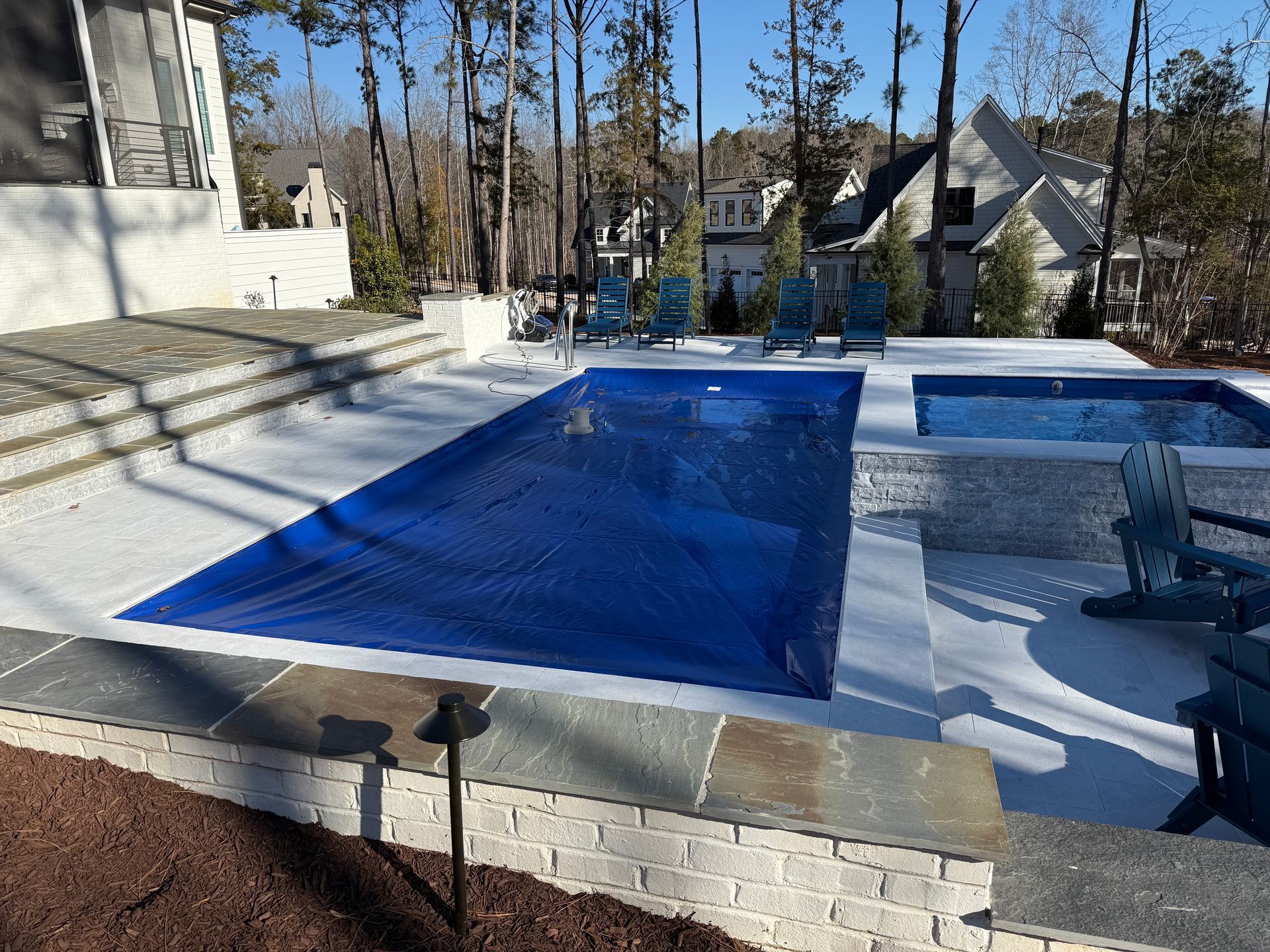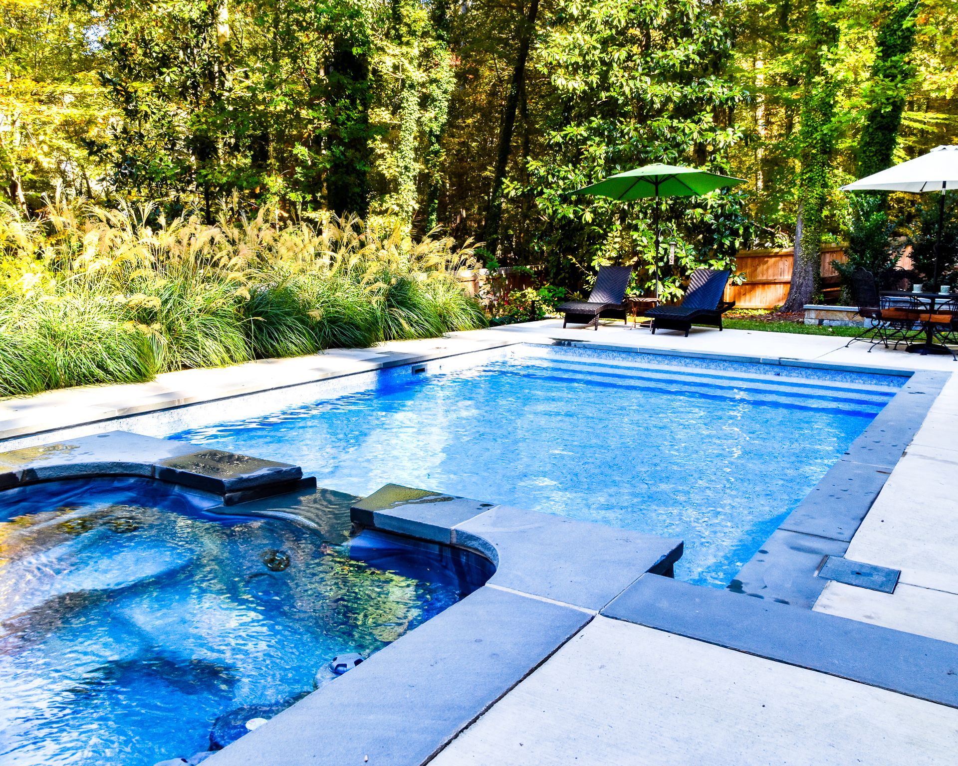 We’ve built hundreds of beautiful new swimming pools throughout the Zebulon, Youngsville, Clayton, Wendell, Knightdale, Wake Forest, Raleigh, Cary, Apex, Durham, Chapel Hill and Holly Springs, NC area! Beyond just installing new in-ground pools, we also offer regular swimming pool repairs to keep your pool in great condition year round. Get a sense of what we can do and start imagining the possibilities for your pool by viewing our photos. When you are ready to get started on your new in-ground pool, do not hesitate to give our team of swimming pool contractors a call!